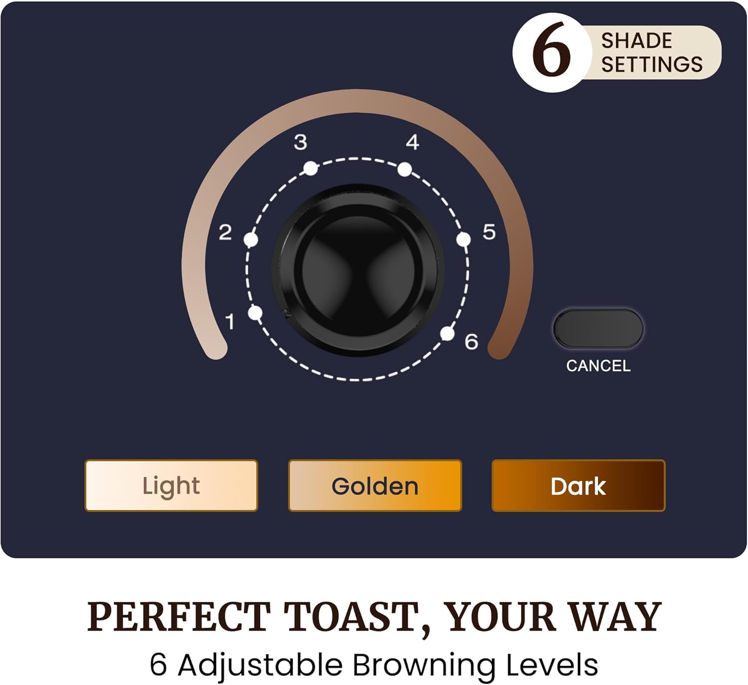 Designed with safety in mind, this toaster features a cool touch exterior, allowing you to handle it without the risk of burns. The convenient cancel function lets you stop the toasting process at any time, giving you complete control over your breakfast. Its compact design makes it ideal for kitchens of all sizes, while the sleek black finish adds a modern touch to your countertop.