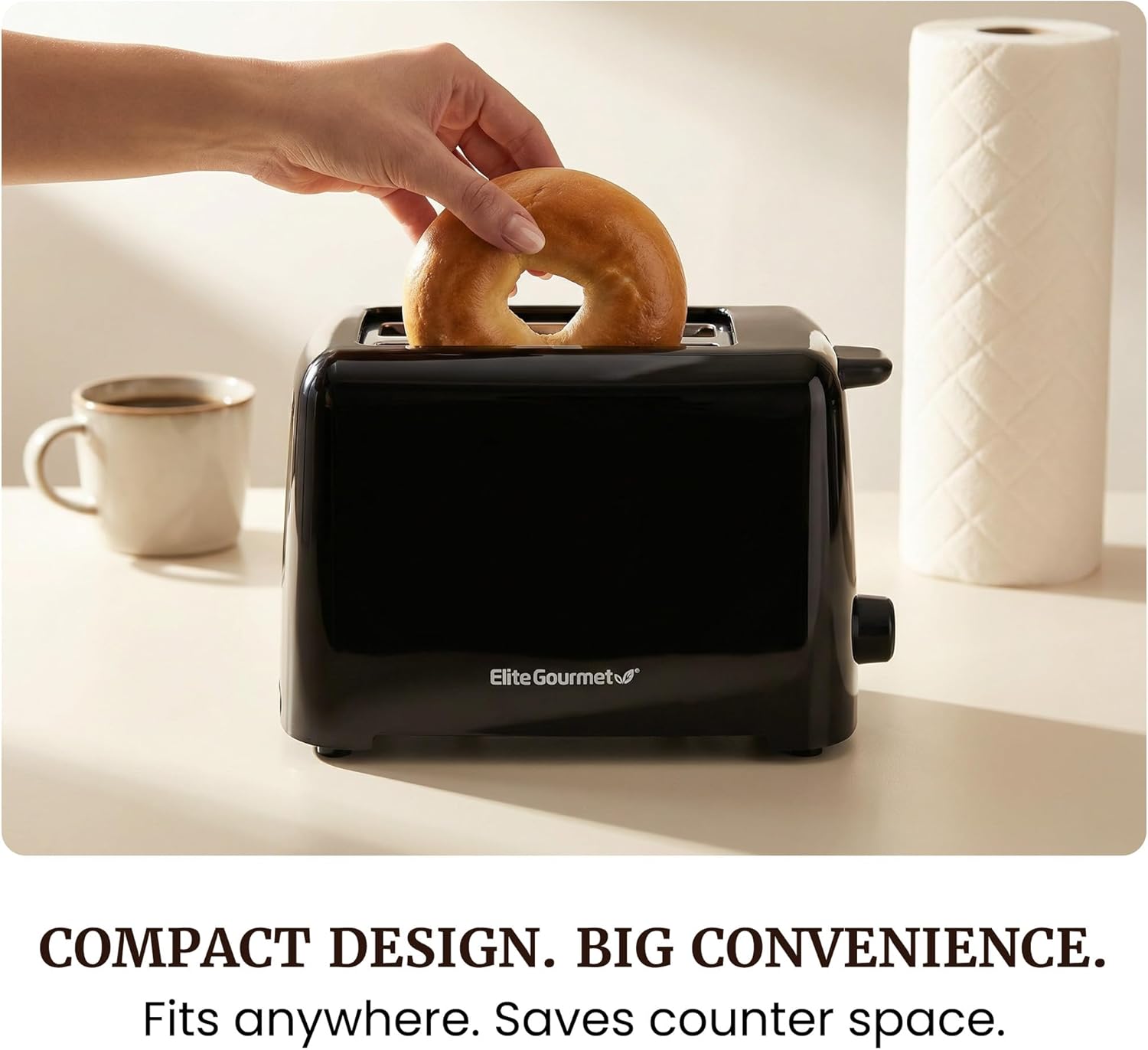 Elite Gourmet 2-Slice Cool Touch Toaster – 6 Browning Levels, Extra Wide 1.25” Slots for Bagels & Thick Bread, Cancel Function, Compact, ETL Certified, Black